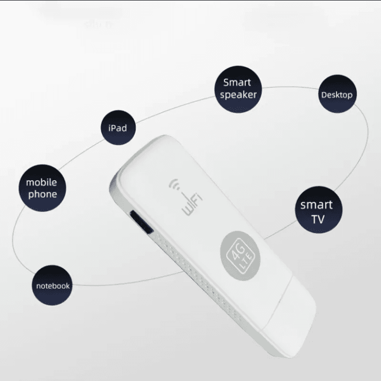 Роутер 4G LTE- виконаний у формфакторі компактного USB модему, трохи більше за стандартну флешку, не займає багато місця і завжди можна брати з собою. Варіантів використання дуже багато, т.к. модем працює від будь-якого джерела живлення з USB: при підключенні до ПК, блок живлення в розетці, PowerBank або в автомобілі від штатного роз’єму. Модем не має акумулятора, отже, не потрібно турбуватися про його вихід з ладу при постійному використанні від розетки, в домашніх умовах.
