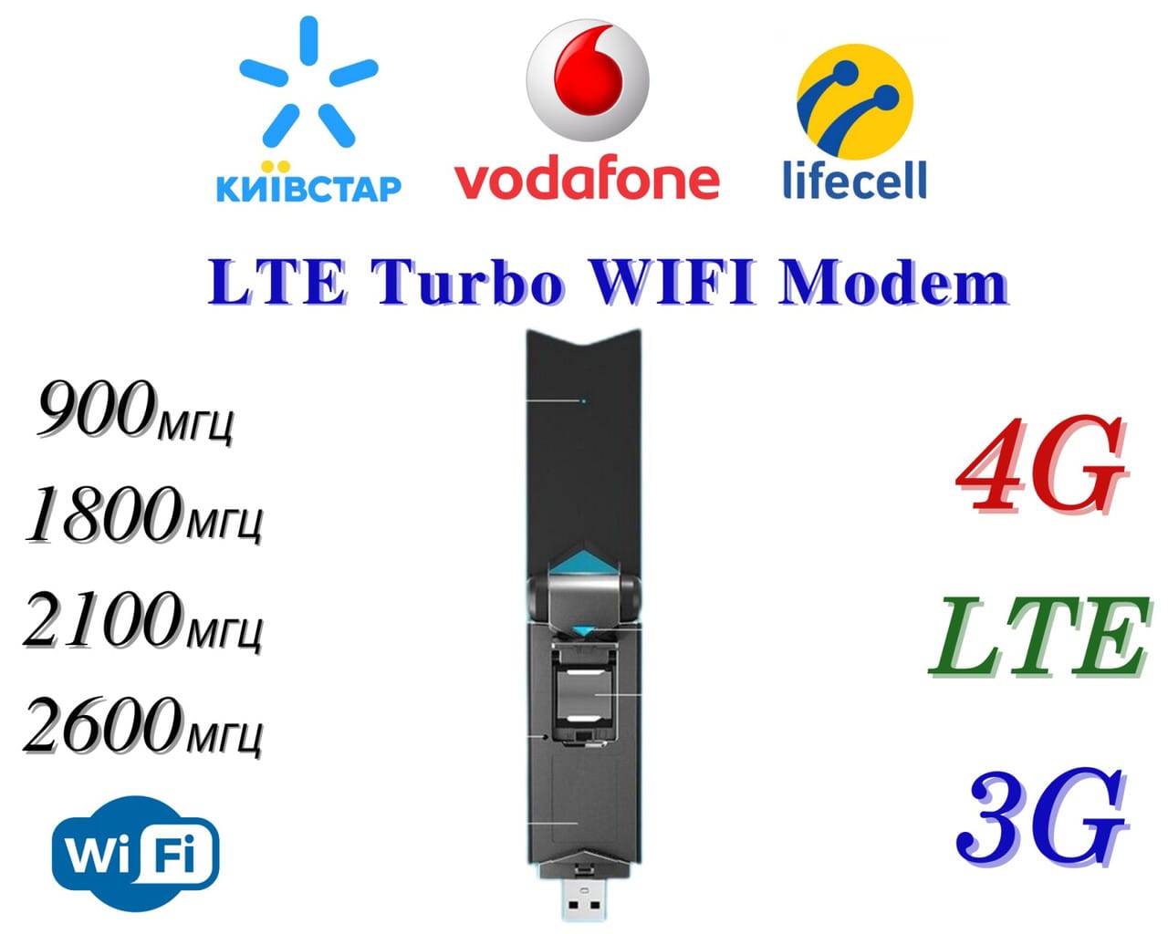 Wi-Fi 4G LTE modem – здатний забезпечити максимальну швидкість завантаження даних, на швидкості до 150 мбіт/с в 4G LTE мережах, так само до 42 мбіт/с в стандарті 3G. Для роботи достатньо встановити SIM карту будь-якого оператора: Київстар, Vodafone, Lifecell – підключення до інтернет відбудеться автоматично і без додаткових настроїв. Усі підтримувані частоти 4G для України: 900 (B8), 1800 (B3) та 2600 (B7). Швидкість інтернет дозволить переглядати відео онлайн високої якості, швидке завантаження великих файлів, перегляд SmartTV та миттєве надсилання повідомлень
